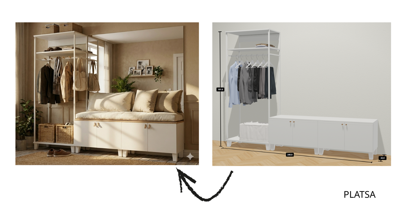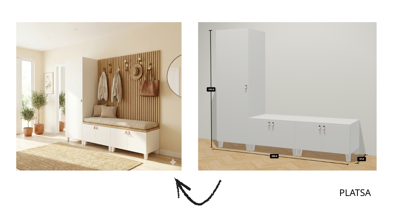 תמיד חלמתם על ארון כניסה שמשלב אחסון למעילים וספסל התארגנות? עם מערכת זו זה ממש קל.